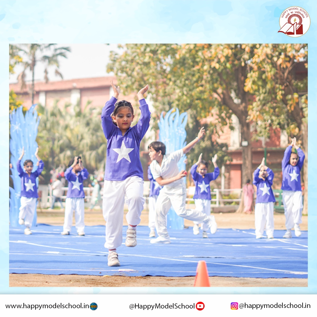 “The Annual Kids sports Day at Happy Model School was held on 1 st March 2025 with great enthusiasm and excitement. The event aimed to encourage physical fitness, teamwork and sportsmanship among young students. Parents, teachers and students gathered to witness and participate in various fun-filled activities. The event commenced with a warm welcome by the school Principal, followed by a motivational speech highlighting the importance of sports in a child’s development. The students then took part in a colourful presentation, showcasing discipline and coordination. A variety of engaging events along with sports and games were organised for different age groups, including gymnastics, yoga, skating, taekwondo and many more. The event was a huge success and was appreciated by all.